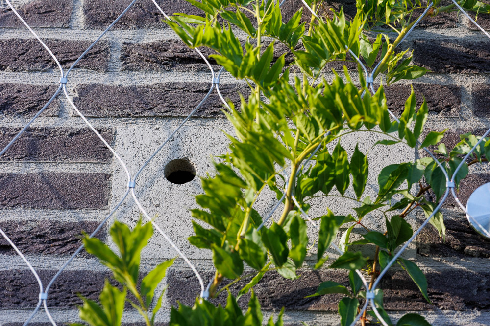 Grondgebonden systemen groeien vanuit de volle grond tegen een klimconstructie welke wij monteren tegen de gevel. Wij passen duurzame klimconstructies toe van RVS met een lange levensduur en bestand tegen alle weersomstandigheden. Er zijn diverse constructies om klimplanten te begeleiden, zoals spankabels of kabelnetten met verschillende soorten vormgeving. De klimconstructie monteren wij een stuk van de gevel, om zo het buitenspouwblad te beschermen tegen ingroei of wortelaanhechting van de beplanting.