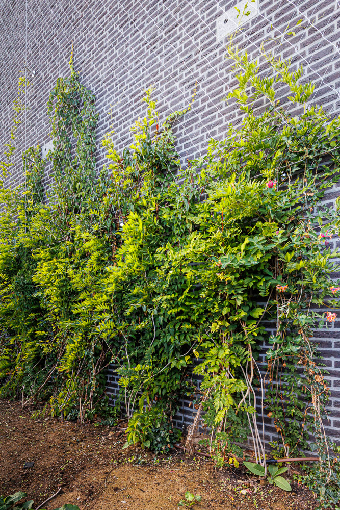 - Je kunt een heel divers assortiment beplanting toepassen op een klein oppervlak, in tegenstelling tot grondgebonden klimplanten.