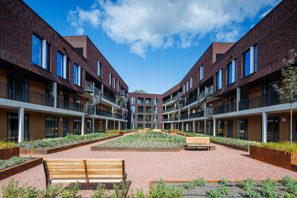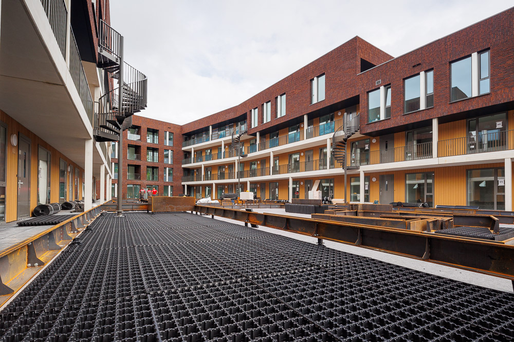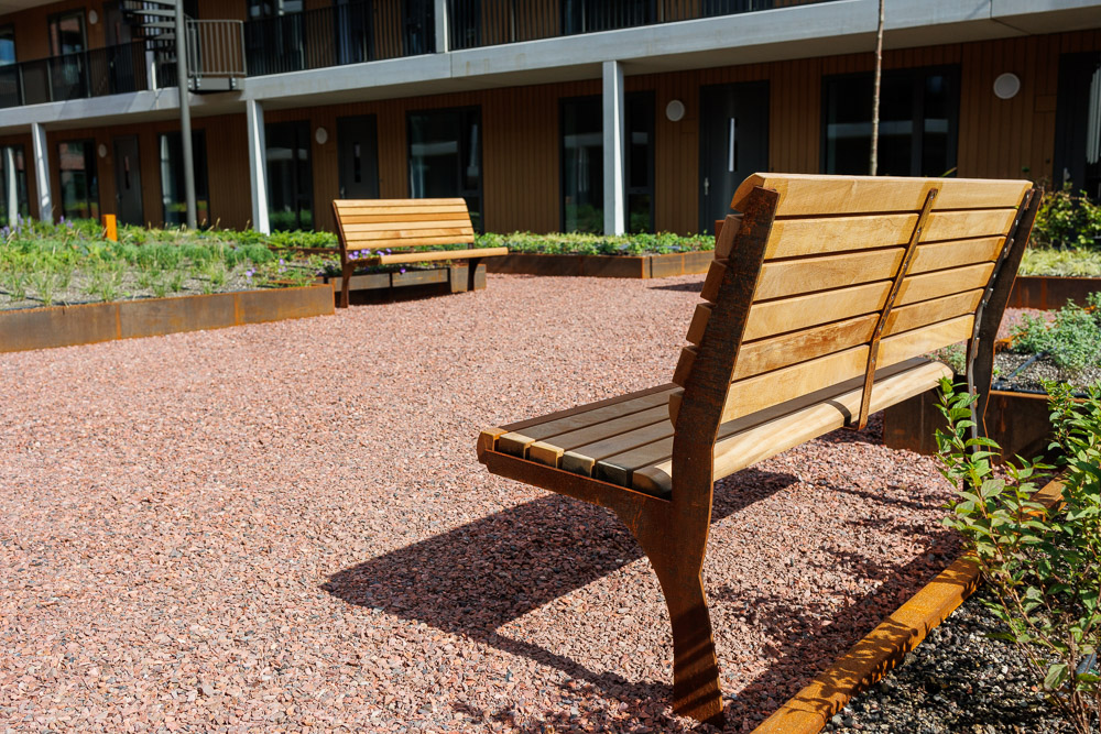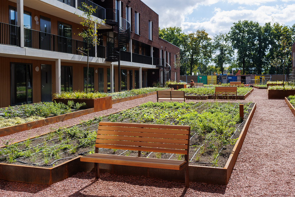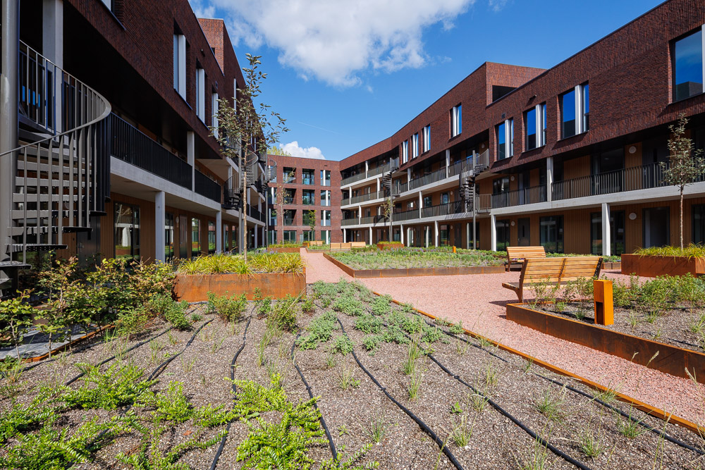 Bij nieuwbouwproject ‘de Hoef’ in Rosmalen heeft Jonkers daktuinen op de binnenplaats een sfeervolle intensieve daktuin gerealiseerd van ruim 850 m². Omwonenden kunnen heerlijk genieten van deze uitnodigende daktuin die voorzien is van meerdere cortenstalen bakken die zijn aangeplant met vaste planten, siergrassen, sierheesters en bomen. Dit sfeervolle verblijfsdak zorgt het jaarrond voor een aangename natuurlijke woonomgeving. De looppaden op deze daktuin worden verlicht en zitmeubilair biedt omwonenden de gelegenheid om ontspannen te genieten van alle beplanting.